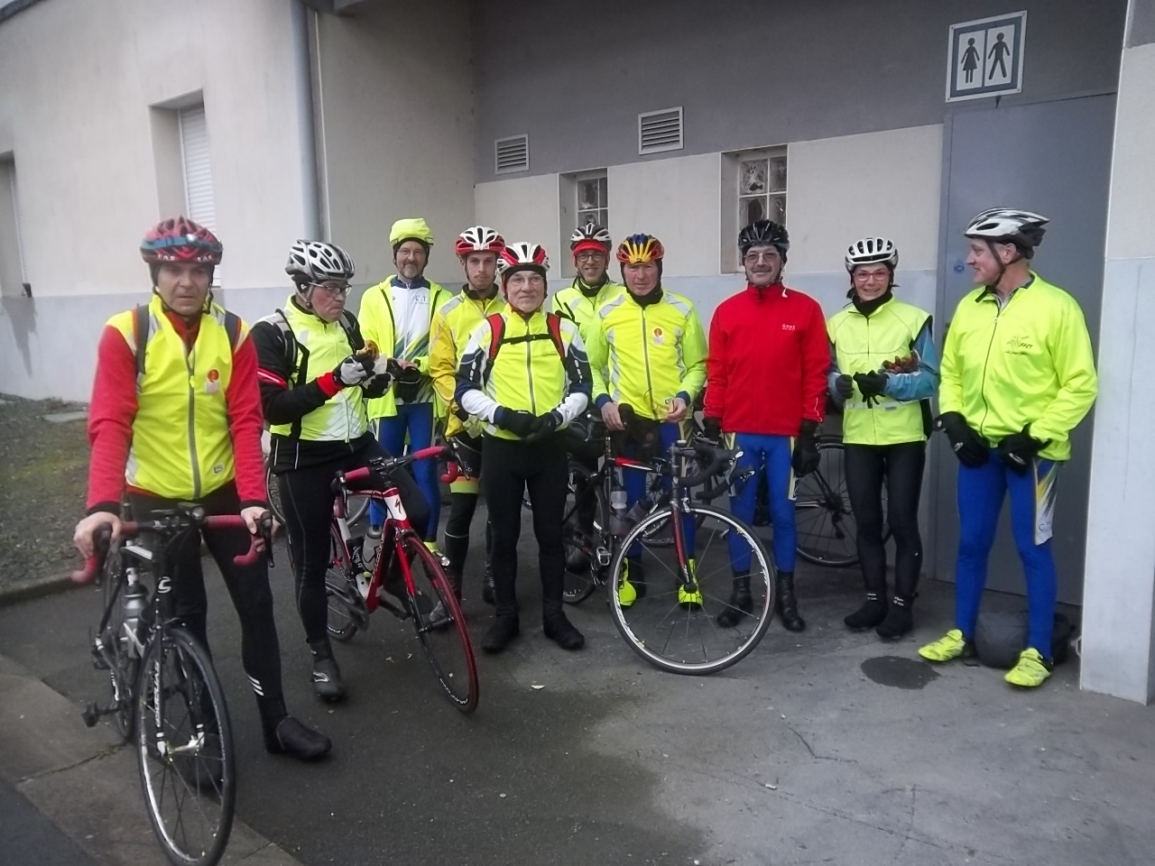 Le groupe des vendéens en route pour Thouars, avec Laurent (17), Olivier, Pierre, François, Marcel, Alain (Laumaillé), Alain Y, Daniel, Freddy, Jean-Michel et Gilles (+ Marie-Jeanne derrière l'appareil)
